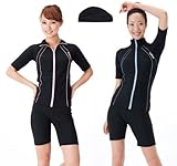 (ルモード)lemode フィットネス水着106 キャップ付 ジッパー調整で襟 半袖セパレート フロントジッパー レディース女性用